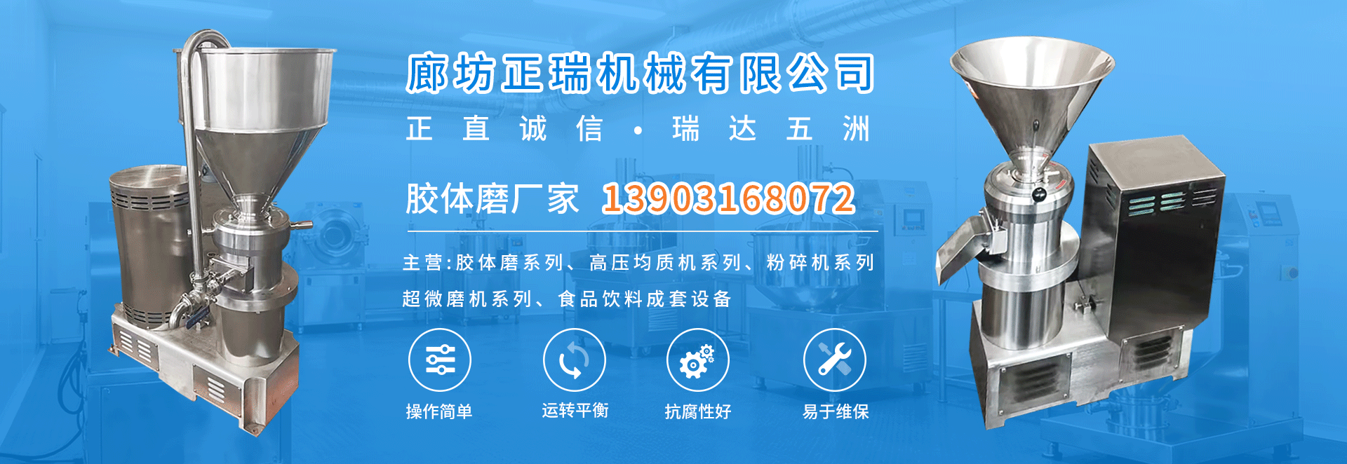 主要產品:膠體磨系列、高壓均質機系列、粉碎機系列、超微磨機系列、食品飲料成套設備